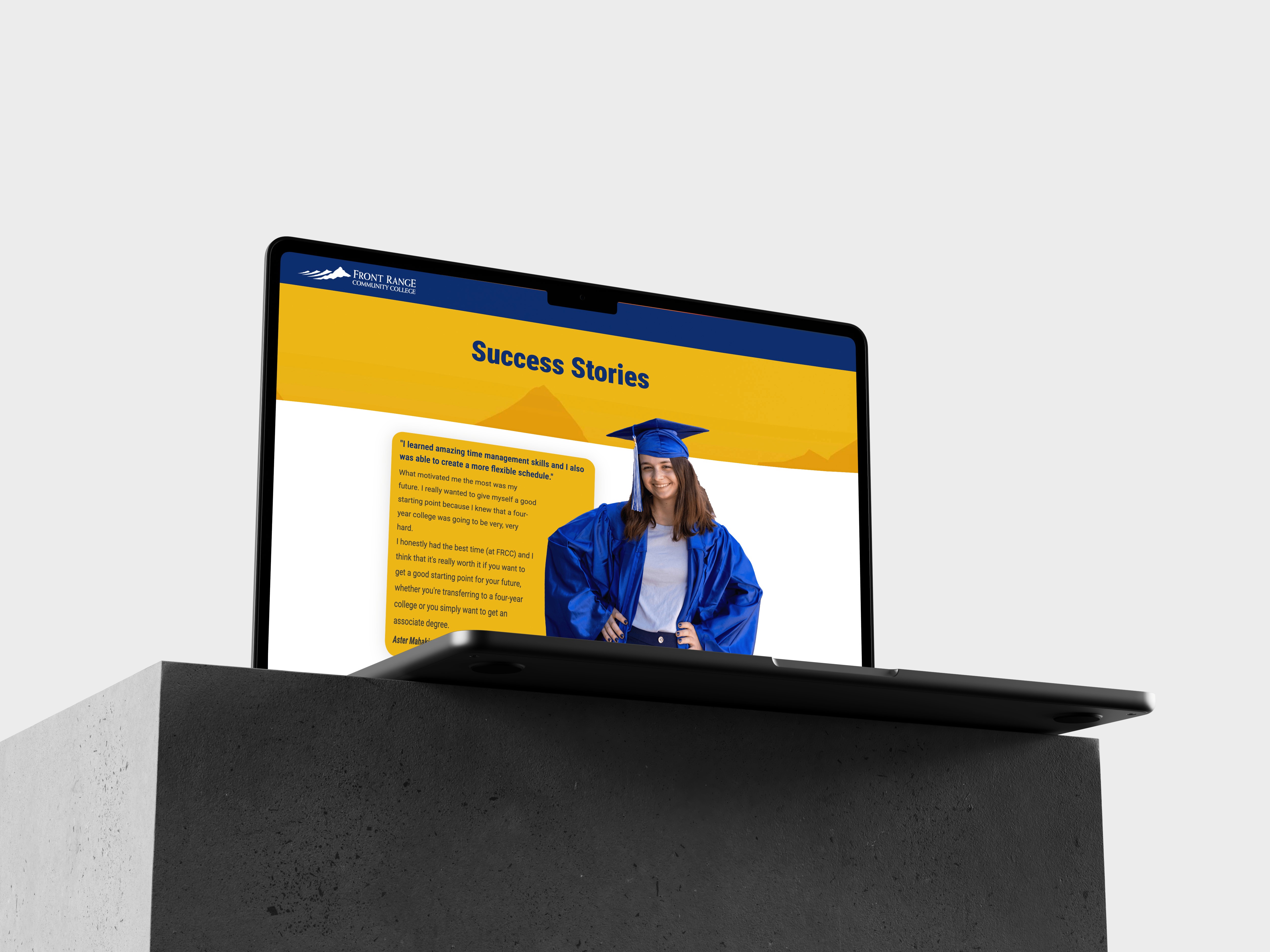 Developed videos with authentic stories in English and Spanish, spotlighting students’ real journeys and reinforcing FRCC’s welcoming environment. These stories showcased diverse experiences, including adult learners, Latine students, and their families.